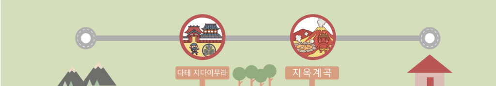 호텔・신치토세 공항(출발) -> 노보리베츠로 이동 -> 다테 지다이무라 -> 지옥계곡 -> 온천 호텔
